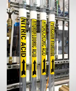 Piping systems need to be regulated with proper marking labels as ours. We manufacture water and solvent-proof labels to identify and ensure safety compliance in piping systems in chemical companies. Our pipe marking labels are clear and easy to read, enhancing workplace safety.